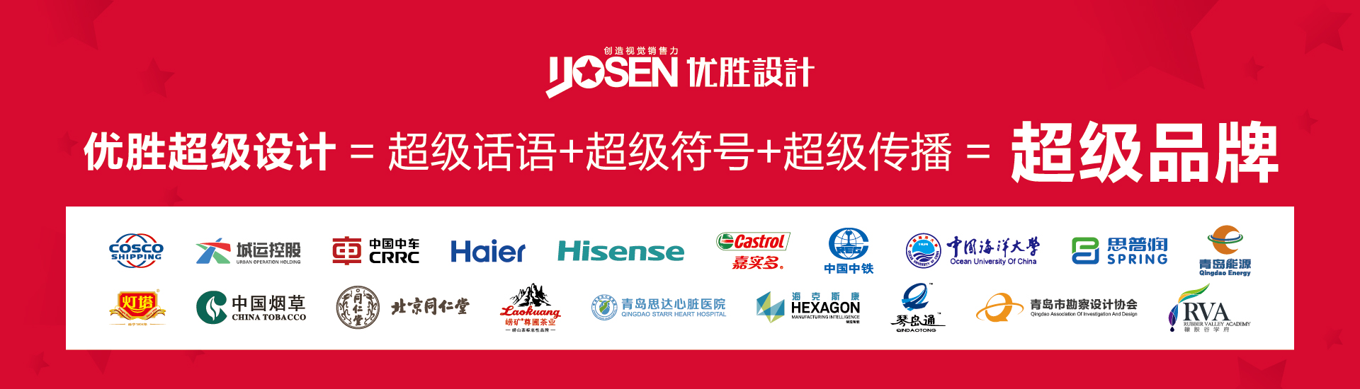 青島優(yōu)勝文化傳播有限公司(簡(jiǎn)稱(chēng)優(yōu)勝設(shè)計(jì))2007年成立于青島,是中國(guó)品牌聯(lián)合會(huì)合作單位?!癐AI中國(guó)廣告創(chuàng)作實(shí)力”100強(qiáng)、“2017東亞國(guó)際版權(quán)交易博覽會(huì)執(zhí)行單位“、青島文化創(chuàng)意協(xié)會(huì)成員、青島誠(chéng)信單位。